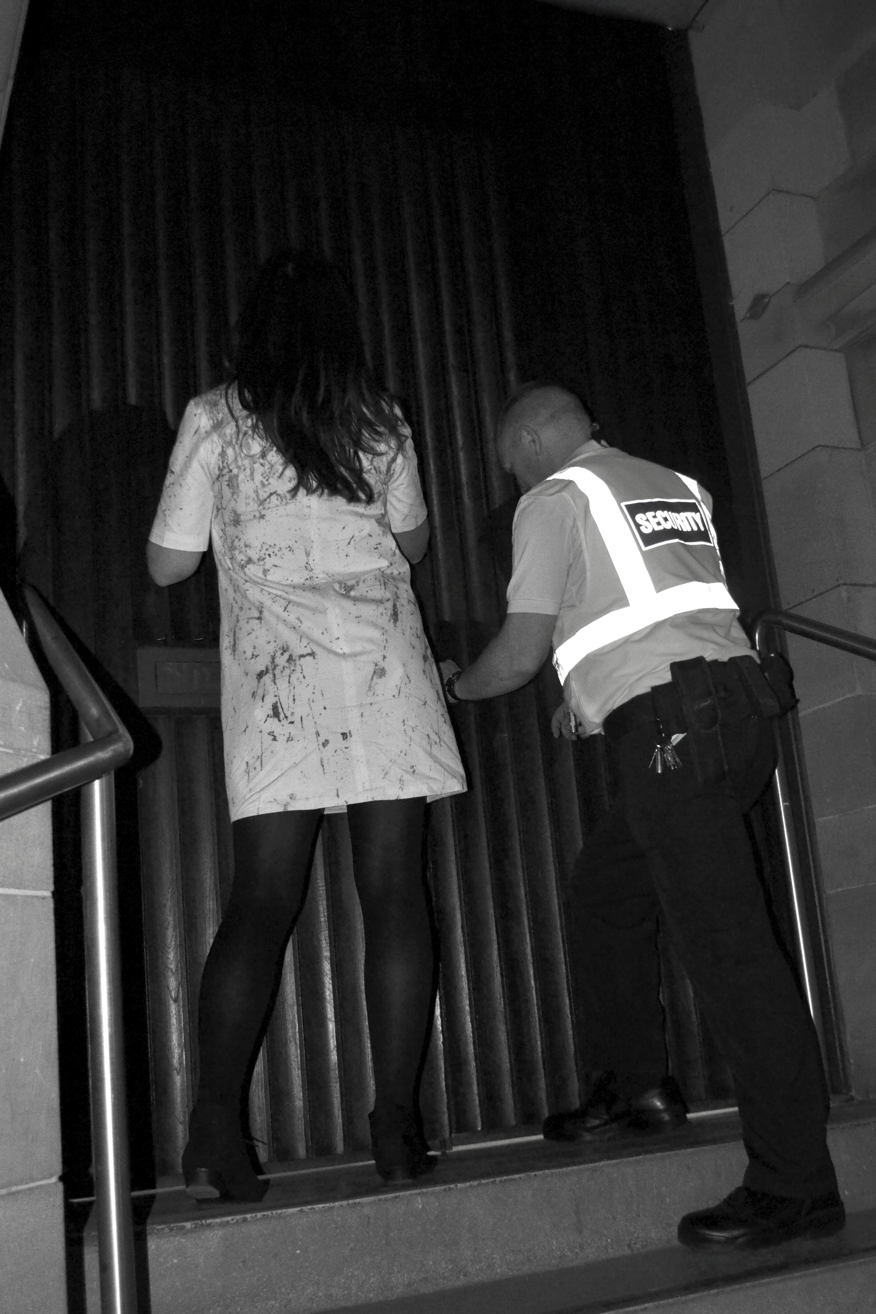 I walked through the spaces during the opening of the MA Show, (2013), while one hand remained in contact with the architectural surfaces.